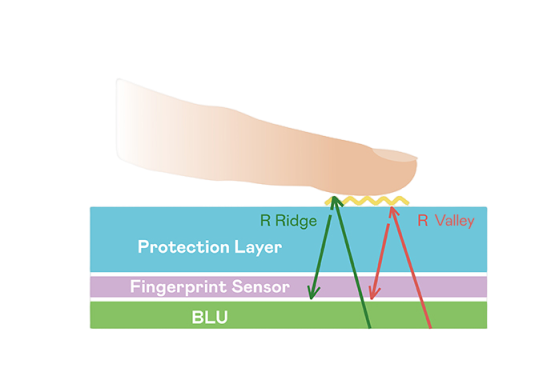 TFT 指紋掃描感測技術利用薄膜電晶體 (TFT) 當作光感測元件,藉由非晶硅 (a-Si) 與低溫多晶硅(LTPS)既有光電轉換特性對不同波段光源進行吸收,使感測 IC 讀取陣列感測元件的光漏電差異,轉換成數位灰階影像。